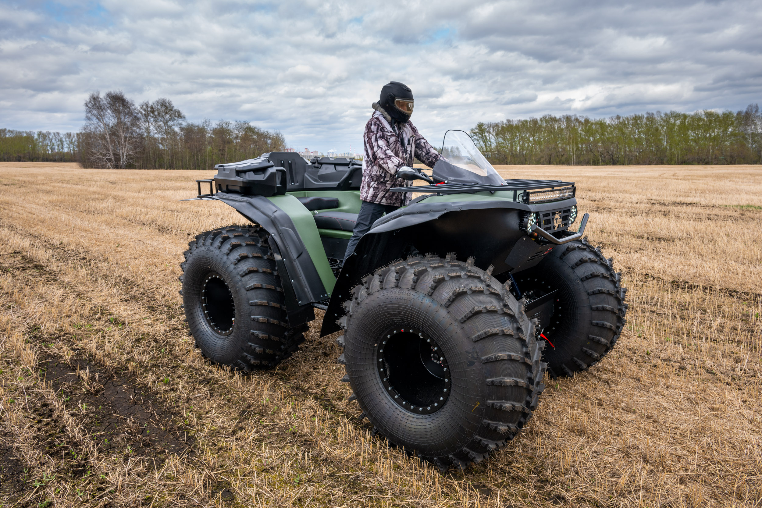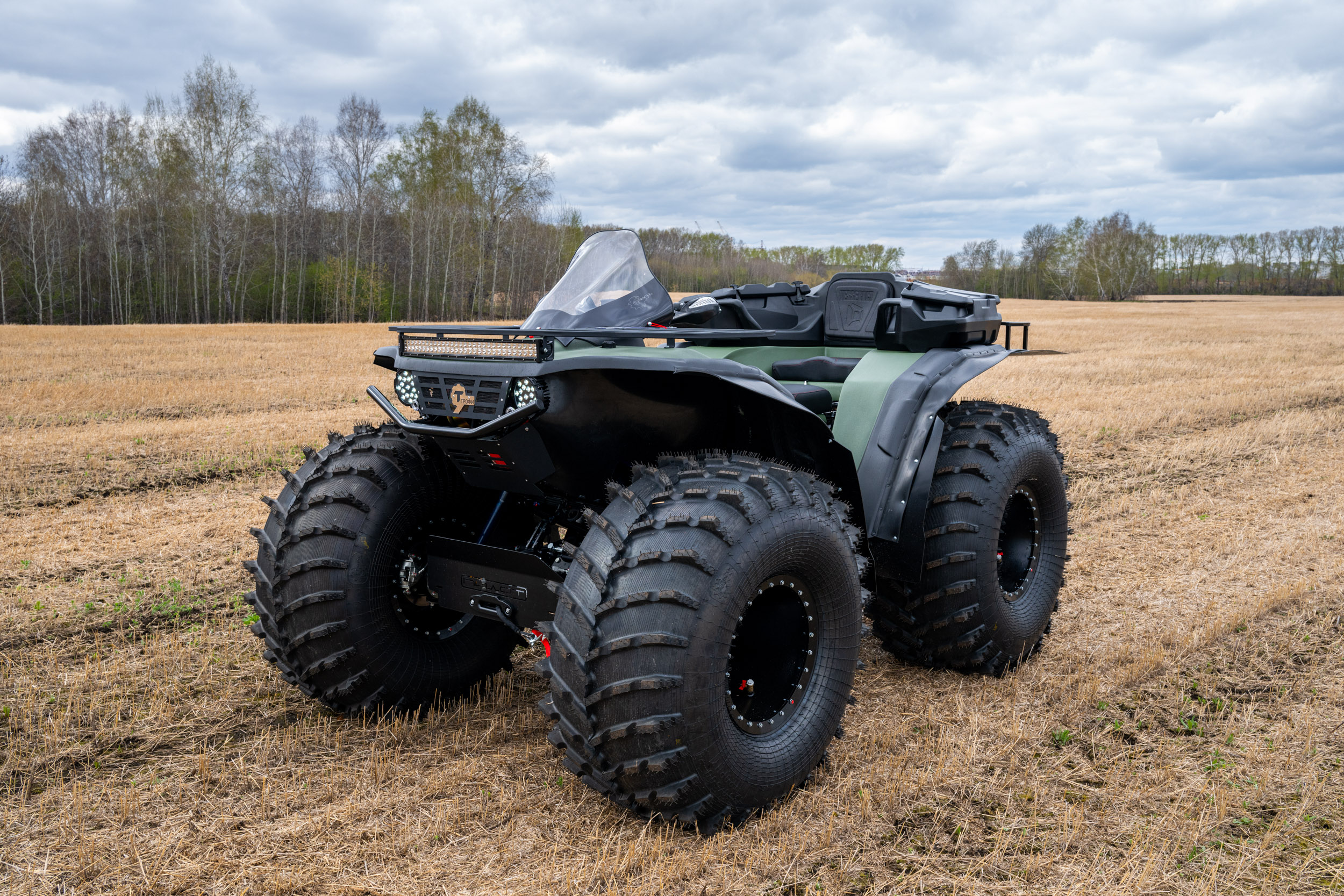 На снимках представлены модели Пикап, Про и Трофи. Каждый квадроцикл демонстрирует свою уникальную проходимость: движение по болотам, глубокому снегу, песчаным дюнам и пересечённой местности.