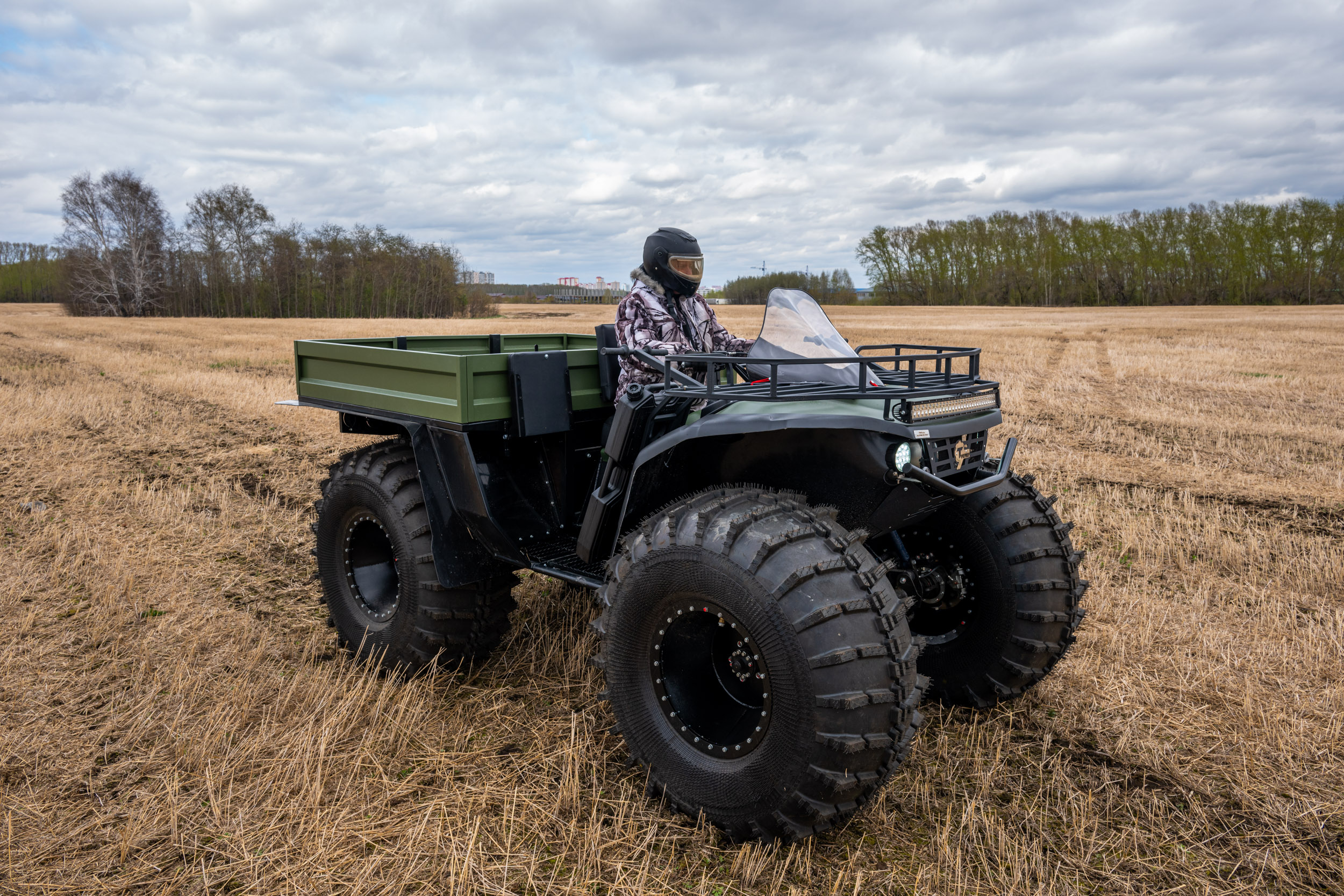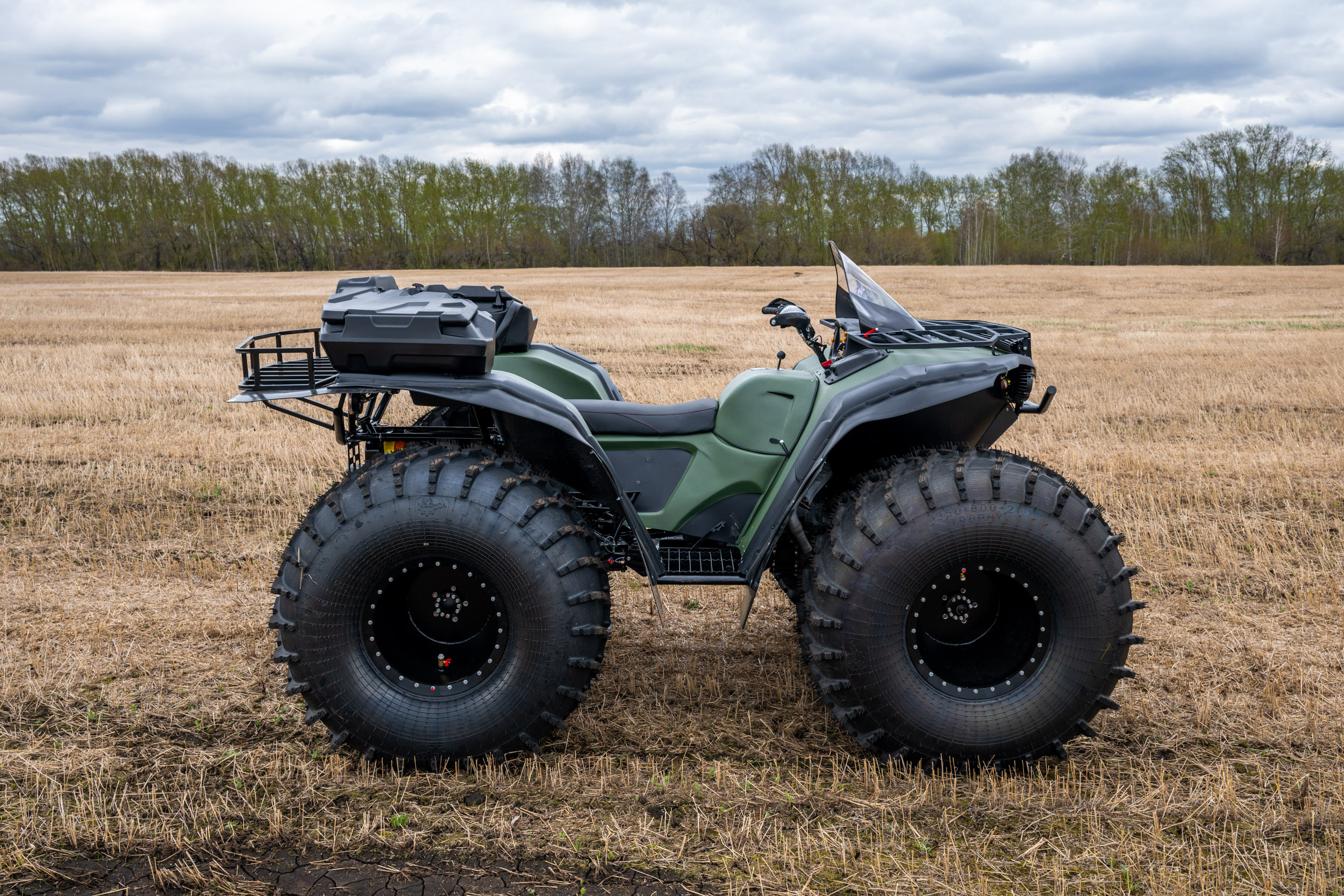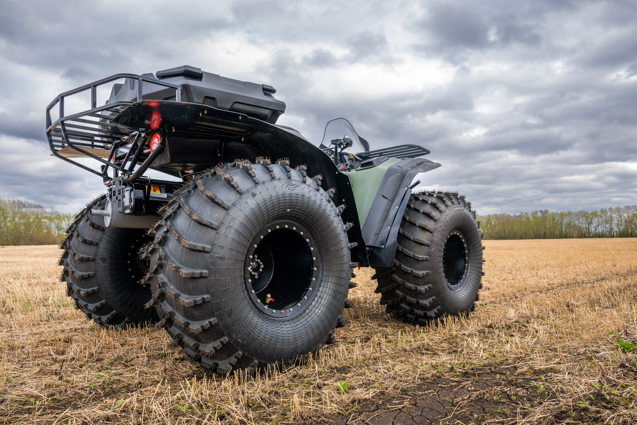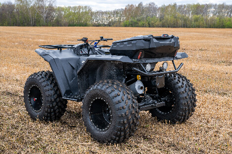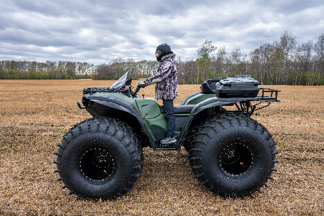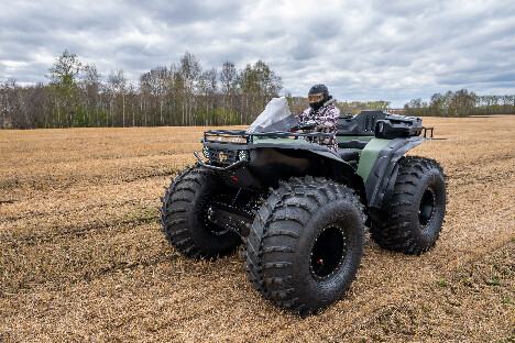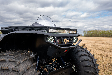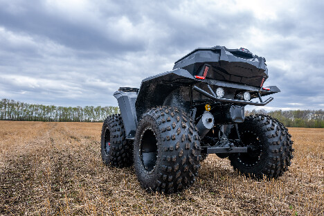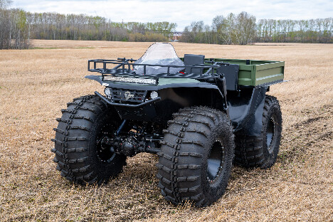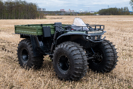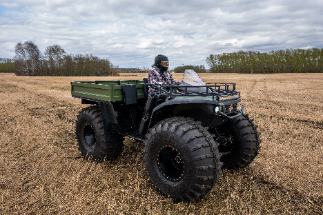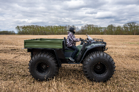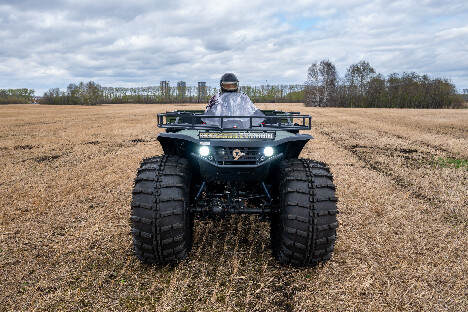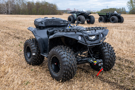 На снимках представлены модели Пикап, Про и Трофи. Каждый квадроцикл демонстрирует свою уникальную проходимость: движение по болотам, глубокому снегу, песчаным дюнам и пересечённой местности.
